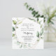 This geometric elegant gold green front and back wedding invitation is perfect for a modern wedding. The design features hand-painted botanical green eucalyptus leaves, adorning a gold geometric frame.