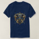 your majestic geometric elephant t-shirt design, featuring deep gold and royal blue tones, an ornate background, and glowing eyes for a powerful and regal look. 🐘👑✨