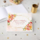 This wedding guest book features a watercolor design with watercolor coral, blush pink, peach and orange flowers with a faux gold geometric frame on a watercolor background. Personalise it your text both on the front cover and the spine. This guest book is part of a collection which includes a full range of matching wedding stationery and bridal products. Please visit our store or view our collection pages to see the full range.