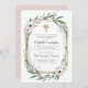 Design is composed of watercolor flowers and foliage with faux gold geometric frame.