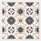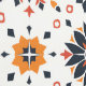 This artwork features a symmetrical pattern of stylised floral motifs, intricately arranged in a geometric layout. The design is dominated by bold shapes and sharp angles, with a colour palette of deep navy, vibrant orange, and rich red set against a clean white background. The repetition of the floral elements and the precise, orderly arrangement create a sense of harmony and balance, while the contrasting colours add vibrancy and energy to the composition. The overall effect is both modern and timeless, combining elements of traditional floral designs with contemporary geometric precision.