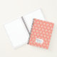 Personalised stylish notebook with your name, the title and date in elegant offblack calligraphy features a geometric floral pattern in summer sun pink and offwhite. Perfect for sketching or keeping track of notes and ideas. Exclusively designed for you by Happy Dolphin Studio!