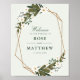 A floral design with a modern geometric frame and white flowers with green foliage. The text and colors on this wedding sign poster can be edited.