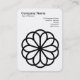 A business card template with geometric flower motif. Company name, business type and address on the front with name, job title, telephony, web and email addresses on the back, with the same layout.