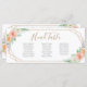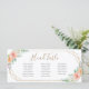 Wedding seating chart card in geometric watercolor flower design pattern.