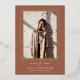 A modern and minimalist graduation announcement design with chic geometric accents. Your vertical photo is framed by a double geometric border in gold foil, with your graduate's name, class year, and school beneath. An ethereal calligraphy script accent adds a touch of softness to this simple and minimal design. Add additional details to the colour-coordinated back, along with a second photo.