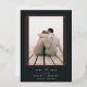 A modern and minimalist save the date design with chic geometric accents. Your vertical photo is framed by a double geometric border in rose gold foil, with your wedding details beneath. An ethereal calligraphy script accent adds a touch of softness to this simple and minimal design. Add additional details to the colour-coordinated back, like your wedding website.