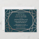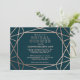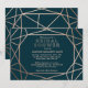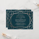 A modern and contemporary winter bridal shower invitation, features a "faux foil" gold rose geometric pattern over a dark turquoise background. All your details are spelled in a beautiful modern typo.