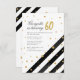 Geometric Glitter Black White Stripe 60th Birthday Invitation