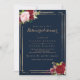 This geometric gold and red tropical rehearsal dinner invitation is perfect for a rustic wedding rehearsal. The artistic bordo marsala design features watercolor, green, pink, burgundy and blush roses assorted with greenery neatly arranged around geometric gold frames in a graceful and radiant flower bouquet.