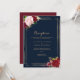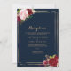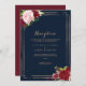 This geometric gold and red wedding reception card is perfect for a rustic wedding. The artistic bordo marsala design features watercolor, green, pink, burgundy and blush roses assorted with greenery neatly arranged around geometric gold frames in a graceful and radiant flower bouquet.