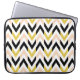 Trendy laptop sleeve with faux glitter gold, black, peachy pink, white chevron pattern.