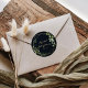 This geometric gold blue green baby shower favour sticker is perfect for a simple baby shower. The design features hand-painted beautiful green leaves in a dark blue background, adorning a gold geometric frame.