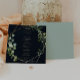 This geometric gold blue green calligraphy dinner menu card is perfect for a simple wedding. The design features hand-painted beautiful green leaves in a dark blue background, adorning a gold geometric frame.