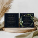 This geometric gold blue green wedding welcome letter is perfect for a simple wedding. The design features hand-painted beautiful green leaves in a dark blue background, adorning a gold geometric frame.