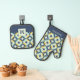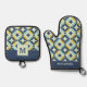 Geometric Gold & Blue Pattern Oven Mitt & Pot Holder Set
