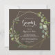 This geometric gold brown green gender reveal party invitation is perfect for a simple baby gender reveal. The design features hand-painted beautiful green leaves in a brown background, adorning a gold geometric frame.
