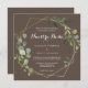 This geometric gold brown green Spanish wedding invitation is perfect for a tropical wedding. The design features hand-painted beautiful green leaves in a dark blue background, adorning a gold geometric frame.