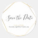 This modern Save the date sticker features your names and wedding date with modern gold effect geometric border and "Save the Date" written in a matching gold coloured elegant script.