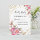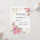 Geometric Gold Frame Pink Floral RSVP Invitation