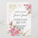Geometric Gold Frame Pink Floral wedding Invitation