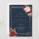 This geometric gold glitter and red tropical wedding invitation is perfect for a rustic wedding. The artistic bordo marsala design features watercolor, green, pink, burgundy and blush roses assorted with greenery neatly arranged around geometric gold frames in a graceful and radiant flower bouquet.