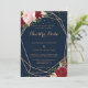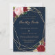 This geometric gold glitter red Spanish wedding invitation is perfect for a tropical wedding. The artistic bordo marsala design features watercolor, green, pink, burgundy and blush roses assorted with greenery neatly arranged around geometric gold frames in a graceful and radiant flower bouquet.