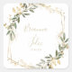These geometric gold greenery wedding envelope seals are perfect for a modern wedding. The design features a beautiful gold geometric frame with elegant green leaves.