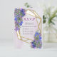 Geometric Gold Glitter Frame design with Lavender - Violet Flower Bouquets on a textured paper for a spring or summer wedding invitation set to personalise