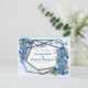 Geometric gold-navy frames with blue corn-flowers, white roses & arum-lilies, blue spring flowers with a light blue textured paper background for a spring or summer stationary card
