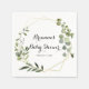 These geometric gold tropical calligraphy baby shower napkins are perfect for a simple baby shower. The design features hand-painted beautiful green leaves, adorning a gold geometric frame.