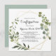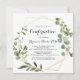 This geometric gold tropical calligraphy confirmation invitation is perfect for a simple religious event. The design features hand-painted beautiful green leaves, adorning a gold geometric frame.