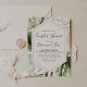 This geometric gold tropical greenery couples shower invitation is perfect for a destination wedding shower. The design features hand-painted watercolor gold and green palm and banana leaves with pink flowers bunched into bouquets, adorning a geometric frame.