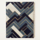 Golden lines and geometric shapes in indigo blue, blue-grey, and beige make up this stunning, contemporary illustration.
