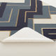 Golden lines and geometric shapes in indigo blue, blue-grey, and beige make up this stunning, contemporary illustration.
