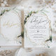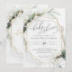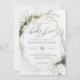 Geometric Faux Gold and Greenery Baby Shower Invitation. Whimsical watercolors and modern typography complement the design. Personalise this Baby Shower Invitation with your baby shower details easily and quickly, press the customise it button to further re-arrange, and format the style and placement of the text.