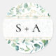 Geometric Greenery Couple Initials Classic Round Sticker