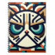 A stylized grumpy cat face in a bold geometric design with teal, cream, and orange tones—perfect for cat lovers with attitude and a love for quirky art.
