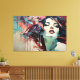 A digital masterpiece fusing human beauty with geometric abstraction. Vibrant coral and turquoise tones explode around a serene face, creating a hypnotic contrast between inner calm and outer energy. Modern art ideal for decorating with sophistication.