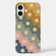 This stylish phone case features a boho geometric pattern of vintage hexagon shapes in a modern colour palette of navy blue, forest green, blush pink, and mustard yellow.