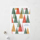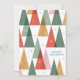 This modern holiday card presents a playful forest scene composed of colourful geometric tree shapes in shades of green, orange, pink, and red. The abstract trees are complemented by delicate snowflakes scattered throughout the design, giving it a festive wintery feel. The "Happy Holidays" message is subtly placed in bold blue lettering, adding a touch of elegance to the vibrant and creative illustration. Ideal for sending warm holiday wishes with a contemporary twist.