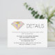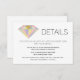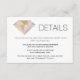 Abstract geometric jewel gemstone trendy wedding details card. This contemporary wedding design features a diamond with triangle blocks in light pink, mint green, light yellow, mauve and gold. The triangles have gold outlines that look like glitter. Use it as reception, directions or accommodations card, for your website or registry etc. On the back there is the same abstract diamond.