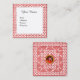 GEOMETRIC LACE RED RUBY GEM STONE MONOGRAM White Square Business Card