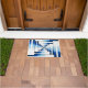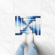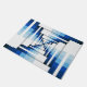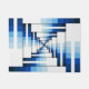 Textural graphic design featuring seven successive geometric layers in shades of blue.