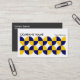 A business card template with an attractive geometric composition in an attractive palette of colours. Company details on the front with name and contact details on the back in white on a contrasting dark grey background. Can be adapted to a variety of businesses and other uses. Can also be changed for use more as a profile card by removing or swapping the company and personal name details.