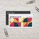 A business card template with an attractive geometric composition made up of 2 x 5 equal square areas in an attractive palette of colours. Company details on the front with name and contact details on the back in white on a contrasting dark grey background. Can be adapted to a variety of businesses and other uses. Can also be changed for use more as a profile card by removing or swapping the company and personal name details.