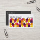 A business card template with an attractive geometric composition in an attractive palette of colours. Company details on the front with name and contact details on the back in white on a contrasting dark grey background. Can be adapted to a variety of businesses and other uses. Can also be changed for use more as a profile card by removing or swapping the company and personal name details.