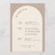Geometric Minimal Sand Arch Wedding Timeline Program in neutral colours. This Wedding Timeline features your wedding program and additional information on the back. Use the design tool to drag and drop all text boxes and delete what you don't need.