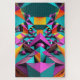 This digital illustration presents a captivating geometric mirage, an abstract artwork that explores the optical illusion and the game of perception. The design is composed of intricate forms that create a three-dimensional effect, inviting contemplation. The piece uses a palette of vibrant colors and sharp contrasts to enhance its visual impact. It is an expression of contemporary art, perfect to add a touch of modern and sophisticated design to any space. An original creation that combines mathematical beauty with avant-garde aesthetics, ideal for those who appreciate unique designs and conceptual art