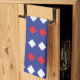 Geometric Modern White Red Diamond Stripe kitchen towel. White Red Diamond Stripe Pattern on Blue Background.